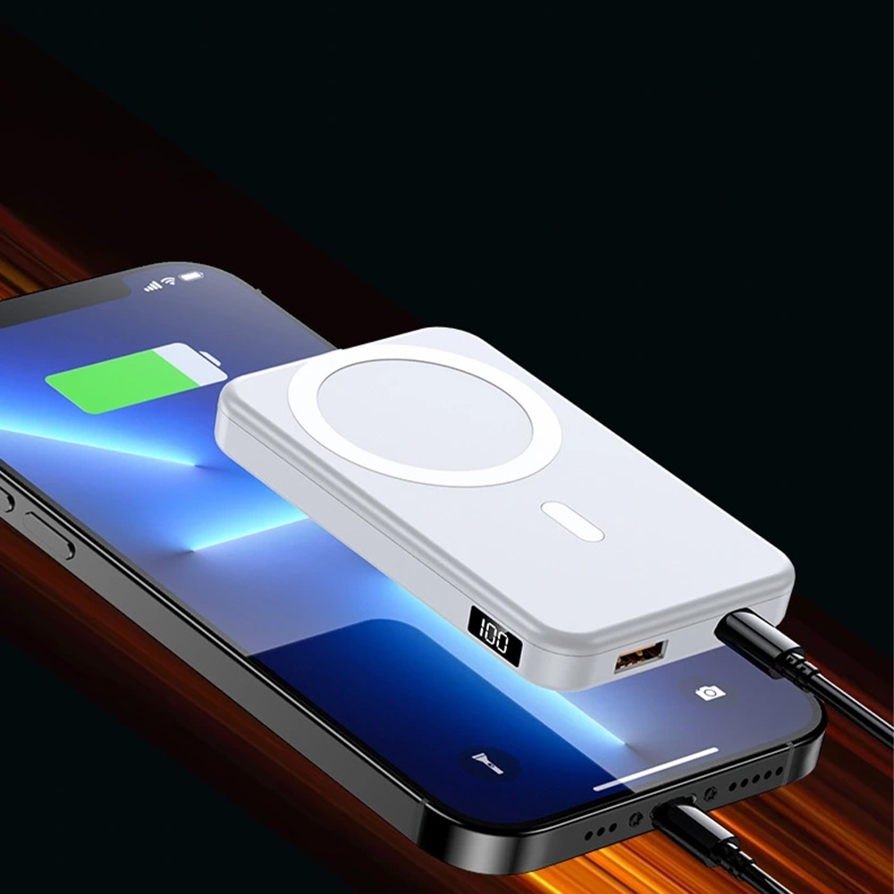 باور بانك صغير يجمع بين شحن لاسلكي محمول وكشاف LED عالي السطوع ليكون الحل المثالي للطاقة والإضاءة في أي وقت وأي مكان.