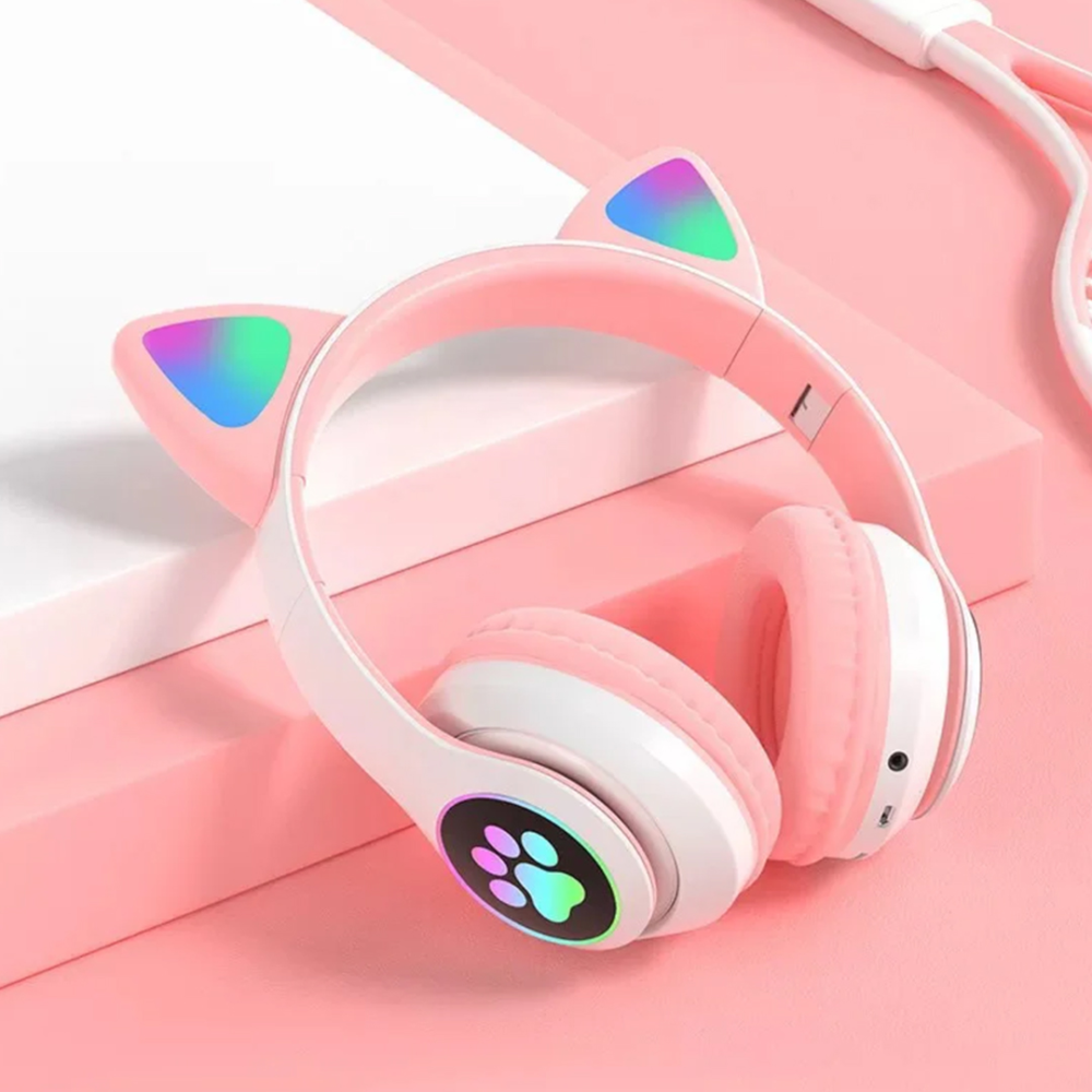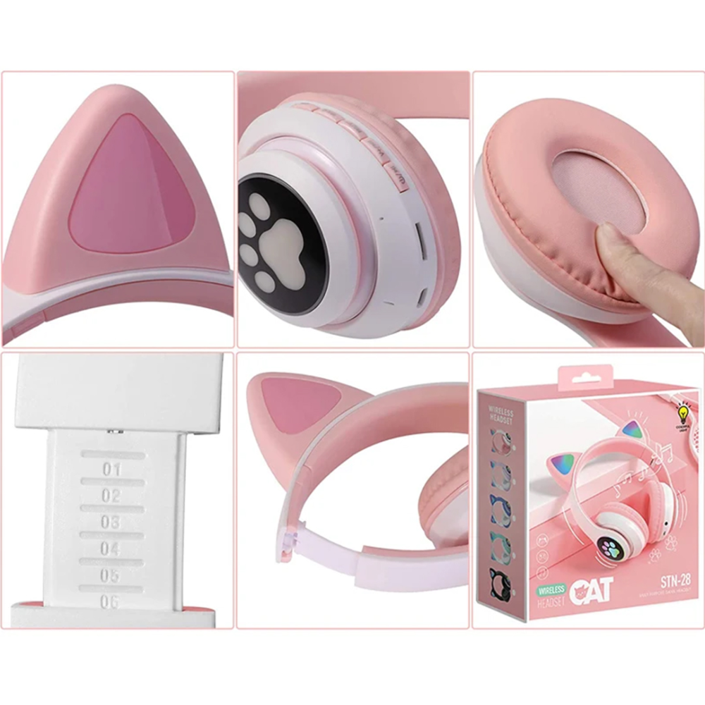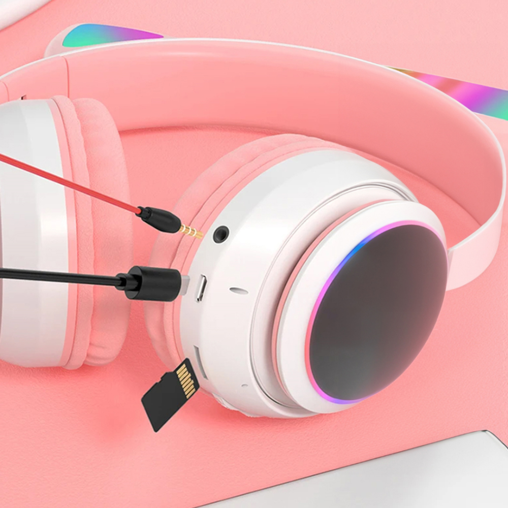 - تصميم جذاب على شكل أذني قطة مع إضاءة LED يمنح مظهرًا فريدًا ويضفي لمسة أنثوية رائعة لمظهر السماعة.